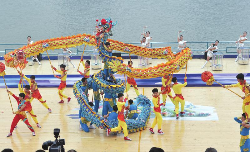 2014大千龙舟经贸文化节开幕式上的舞龙表演 雷远东 摄
