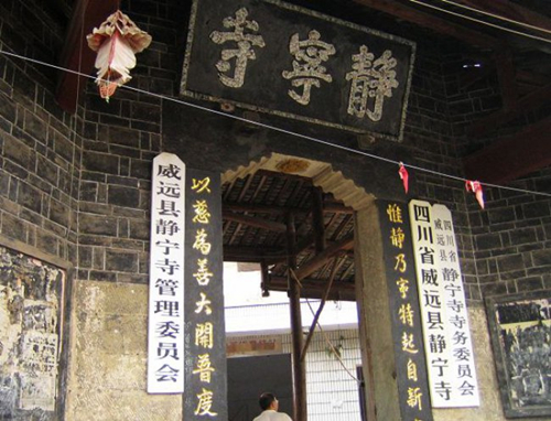 静宁寺是始建于明末清初的一座规模较大的儒、释、道三教合一的归真寺庙。它座落在四川省威远县向义镇静宁寺村,坐南朝北,依山而筑,高低起伏,气势宏伟,北距县城14公里,南接自贡市17公里,全寺占地面积为6.6万平方米,房屋建筑面积为3万多平方米,共有大小厅、殿、堂及房屋1000余间。静宁寺中西合璧的建筑风格是川南地区结构最严谨、规模最大、保存最完好的寺庙,属省级文物保护单位。属省级文物保护单位。